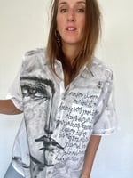 Chemise vintage chinée, peinte à la main au pinceau et à l’encre textile.