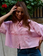 ♥️Pièce unique créée en collaboration avec la talentueuse poétesse Sarah Avena ♥️Chemise vintage chinée, peinte à la main au pinceau et à l’encre textile, coupée courte