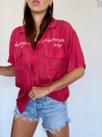 Chemise en soie vintage peinte à la main au pinceau et à l’encre textile - Pièce unique
