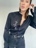 Chemise vintage chinée, peinte à la main au pinceau et à l’encre textile.