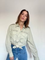 Chemise d'uniforme, chinée, peinte à la main au pinceau et à l’encre textile - Pièce unique