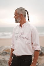 Chemise vintage chinée, peinte à la main au pinceau et à l’encre textile - Pièce unique