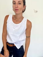 Petit top brodé en coton, chiné et peint à la main au pinceau et à l’encre textile - Pièce unique