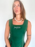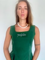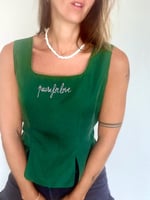 Débardeur en soie, chiné et peint à la main au pinceau et à l’encre textile.